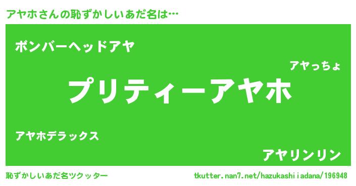 | ヘコむあだ名 | 『アヤにゅー』『アヤ太郎』『つくし』 |