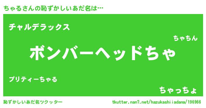 | 意味不明あだ名 | 『眠気覚ましガムちゃる味』『自称ちゃる』 |