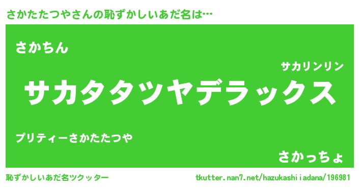 | ヒーロー風カッコイイあだ名 | 『究極戦士サカタタツヤ』『仮面サカダー』 |