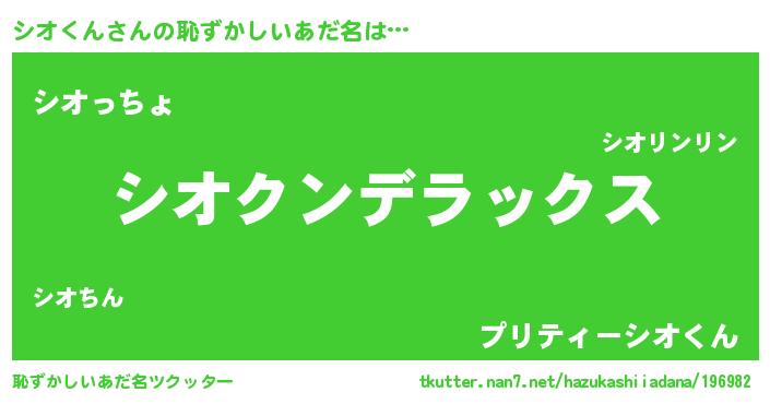| 意味不明あだ名 | 『自称シオくん』『シオくんフォーエバー』 |