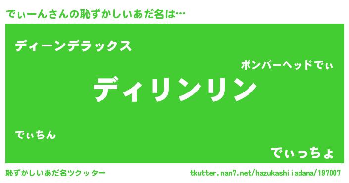 | 男性向けラノベタイトル風あだ名 | 『緋弾のディーン』『魔弾の王とでぃーん』 |