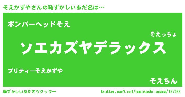 | ヒーロー風カッコイイあだ名 | 『仮面ソエダー』『正義の使者そえかずや』 |
