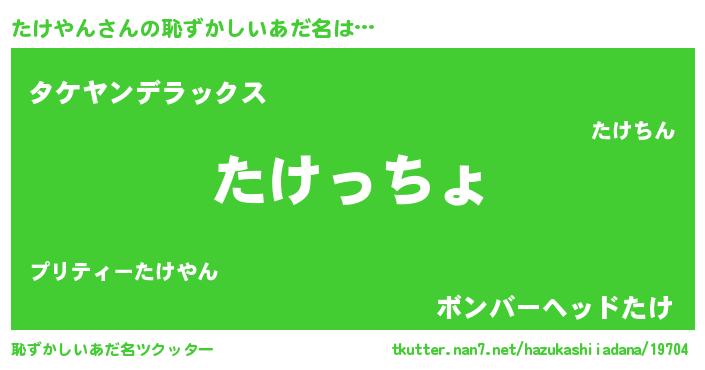 | 意味不明あだ名 | 『たけやんフォーエバー』『自称たけやん』 |