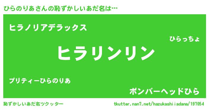 | 意味不明あだ名 | 『とにかく怪しいひらのりあ』 |