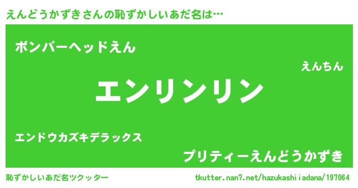 | 意味不明あだ名 | 『とにかく怪しいえんどうかずき』 |