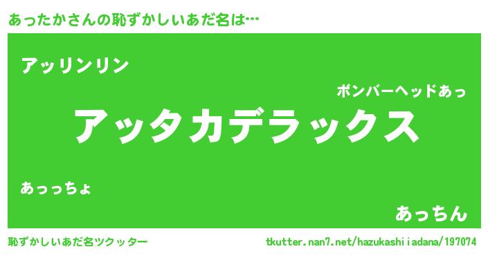 | 意味不明あだ名 | 『自称あったか』『永久保存あったか』 |