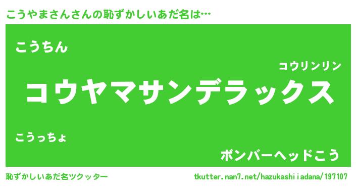 | ヘコむあだ名 | 『こうやまさん(爆)』『こうお』 |