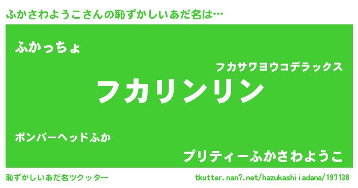 | 意味不明あだ名 | 『とにかく怪しいふかさわようこ』 |