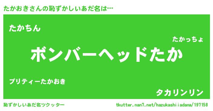 | ヘコむあだ名 | 『たかおき(苦笑)』『たかっ子』 |
