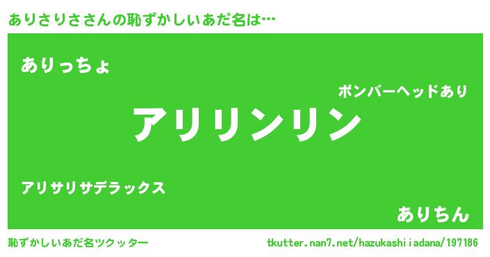 | 意味不明あだ名 | 『とにかく怪しいありさりさ』 |