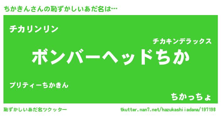 | 意味不明あだ名 | 『住所不定無職ちかきん(8歳)』 |