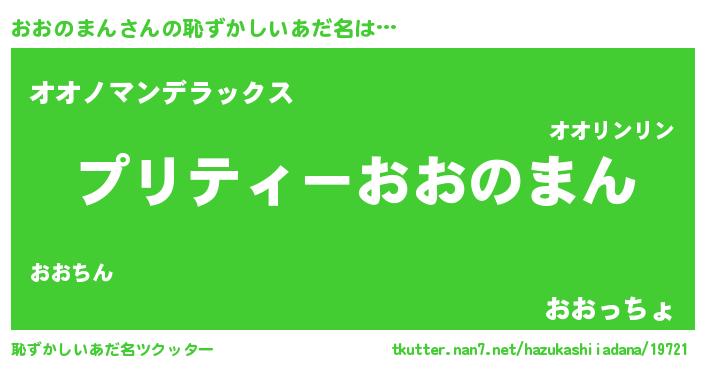 | 男性向けラノベタイトル風あだ名 | 『おおのまんの憂鬱』 |