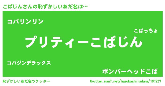 | 欧米人風あだ名 | 『マイケルこばじん』『ウサインこばじん』 |