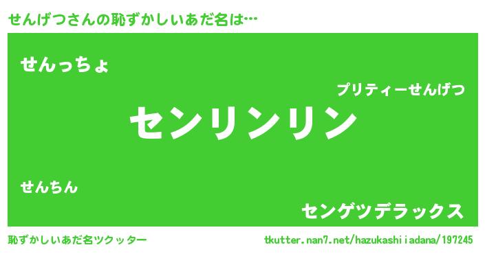 | 胡散臭い通販商品みたいなあだ名 | 『信頼と実績のサプリメント…その名も「せんげつ」』 |