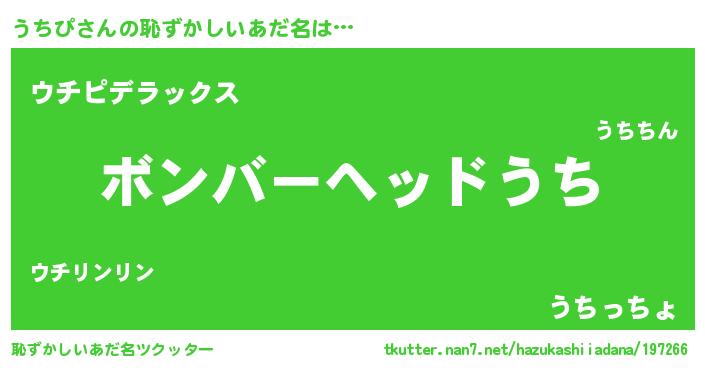 | ヒーロー風カッコイイあだ名 | 『正義の使者うちぴ』『最強戦士ウチピ』 |