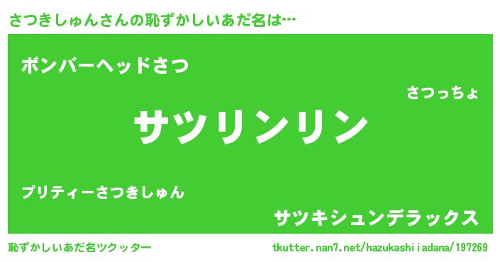 | 男性向けラノベタイトル風あだ名 | 『さつきしゅんに滅ぼされるだけの簡単なお仕事です』 |