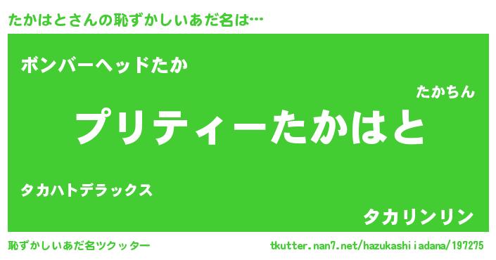 | 欧米人風あだ名 | 『マイケルたかはと』『ダニエルたかはと』 |