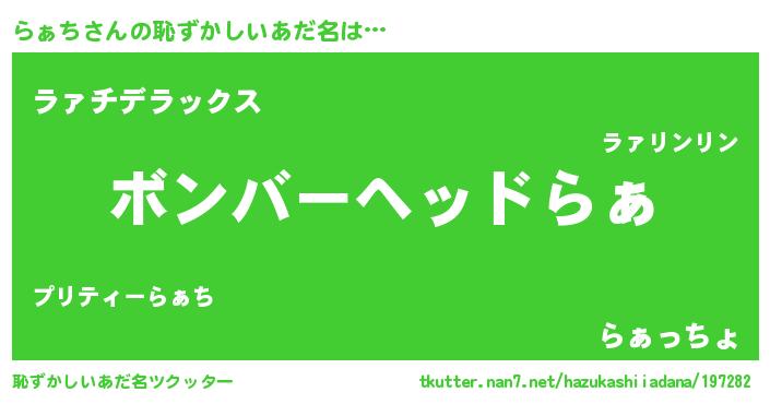 | 自動車の名前っぽいあだ名 | 『ランラァギーニ』『ランR』 |