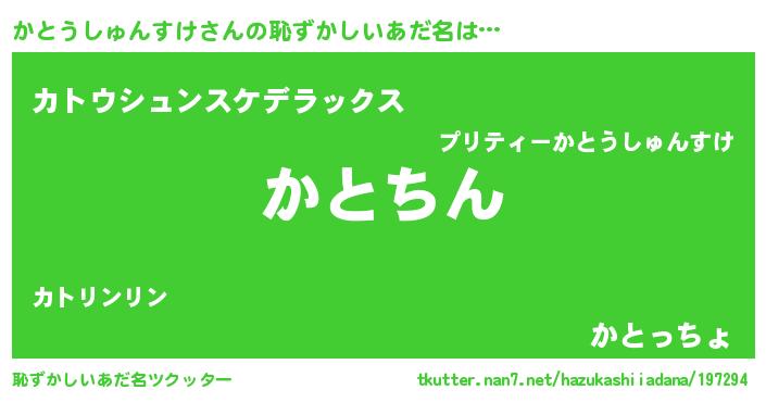 | 可愛いあだ名 | 『かとうしゅんすけママ』『かーみん』 |