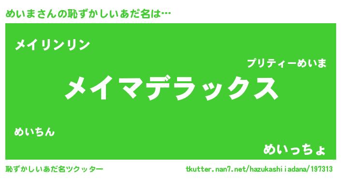 | ヘコむあだ名 | 『めいを』『つくし』『めいっふぃ~』 |