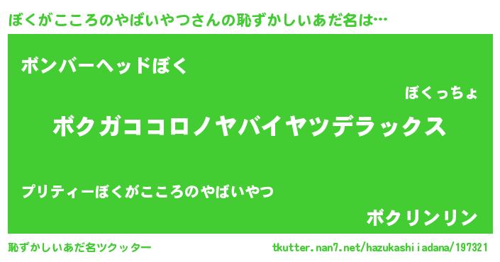 | 欧米人風あだ名 | 『ダレノガレぼくがこころのやばいやつ』 |