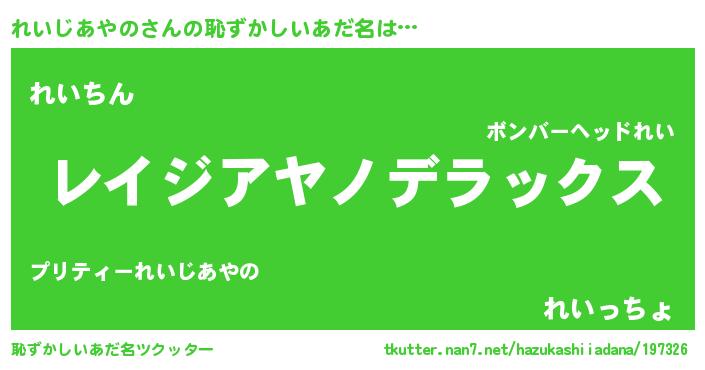 | 意味不明あだ名 | 『自称れいじあやの』 |