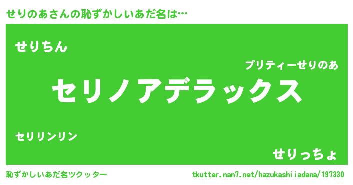 | ヘコむあだ名 | 『せりのあ(苦笑)』『つくし』 |