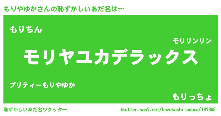 | 意味不明あだ名 | 『自称もりやゆか』『永久保存もりやゆか』 |