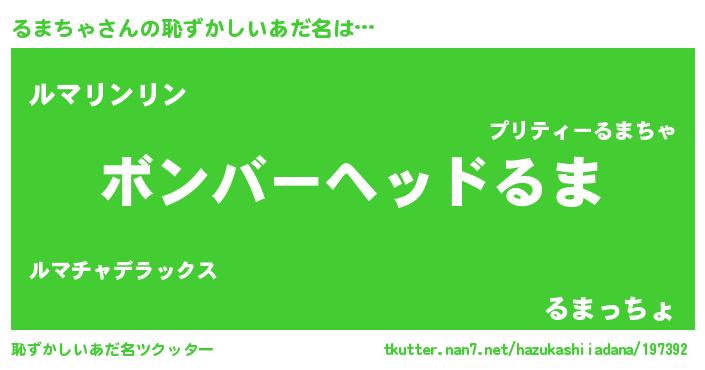 | ヘコむあだ名 | 『るまっちょ』『豆乳』『るまふぇ~』 |