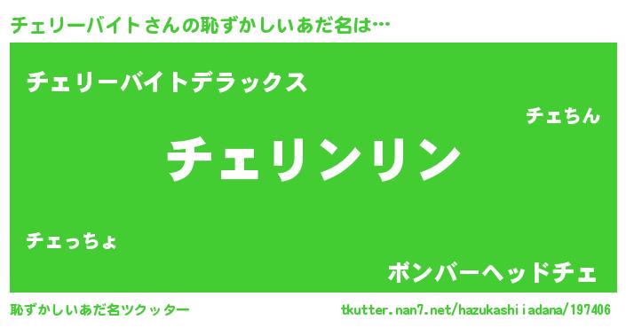 | 欧米人風あだ名 | 『ウサインチェリーバイト』 |