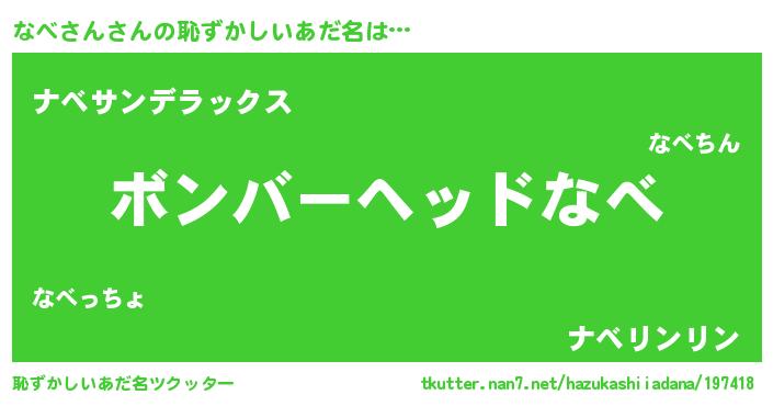 | ヒーロー風カッコイイあだ名 | 『愛の使者なべさん』『暗黒騎士ナベ』 |