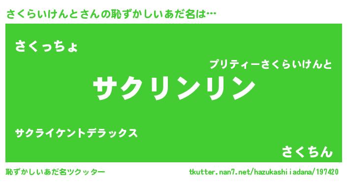 | 意味不明あだ名 | 『とにかく怪しいさくらいけんと』 |