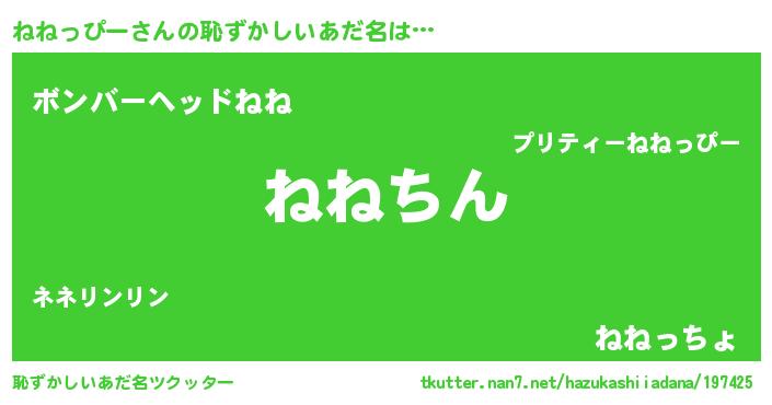 | ヘコむあだ名 | 『ねねっぴー(遠い目)』『つくし』 |