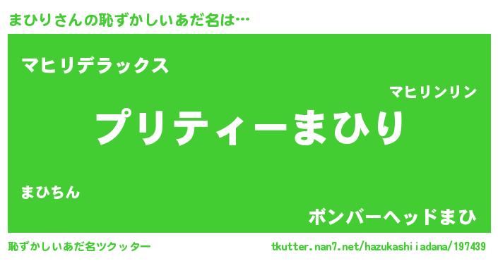 | ヒーロー風カッコイイあだ名 | 『スーパーマヒリ』『仮面マヒダー』 |