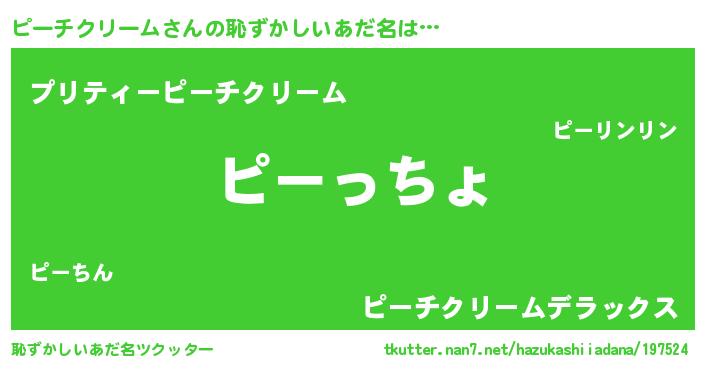 | 女子向けラノベタイトル風あだ名 | 『ピーチクリームの雑貨屋さん』 |