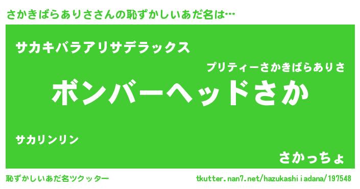| 胡散臭い通販商品みたいなあだ名 | 『モンドセレクションを受賞した隕石のかけら…その名も「さかきばらありさ」』 |