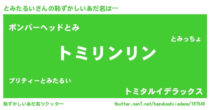 | ヒーロー風カッコイイあだ名 | 『銀牙騎士トミ』『慈愛の使者とみたるい』 |