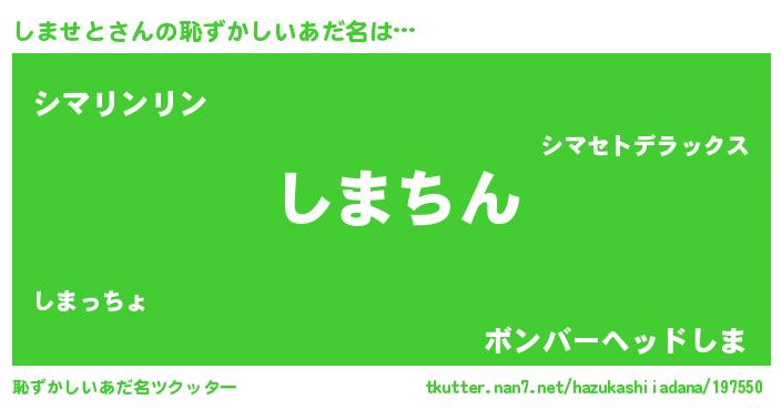 | ヘコむあだ名 | 『しませと(小並感)』『しまぷりん』 |