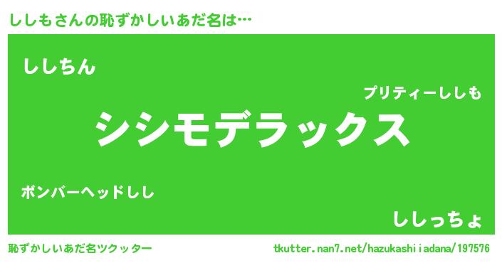 | ヘコむあだ名 | 『ししも(笑)』『なまこ酢』 |