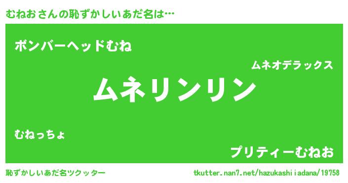 | 意味不明あだ名 | 『とにかく怪しいむねお』『自称むねお』 |