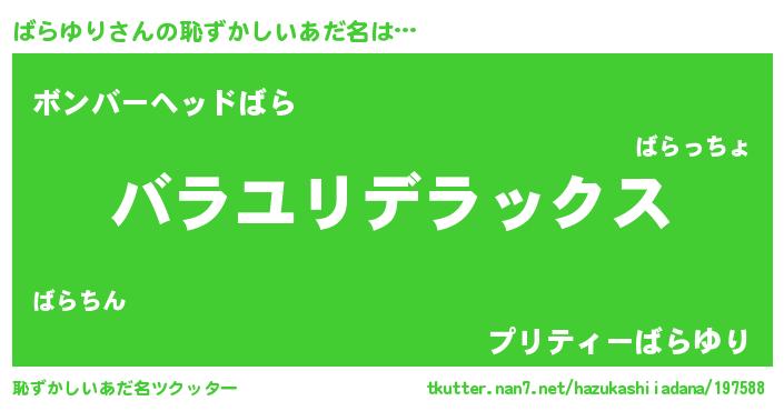 | 意味不明あだ名 | 『住所不定無職ばらゆり(81歳)』 |