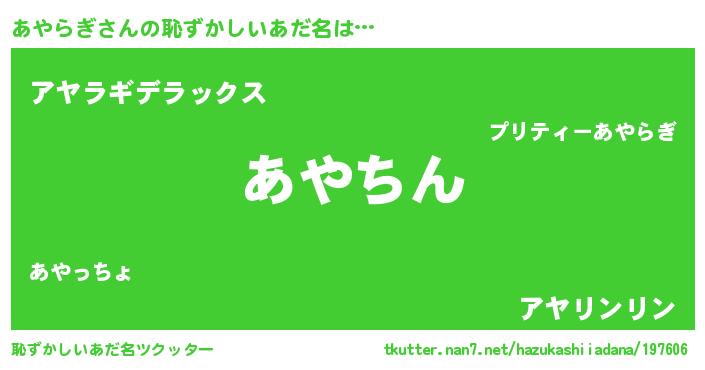 女子向けラノベタイトル風あだ名 | 『あやらぎの契約王妃』『闇のあやらぎ』 |