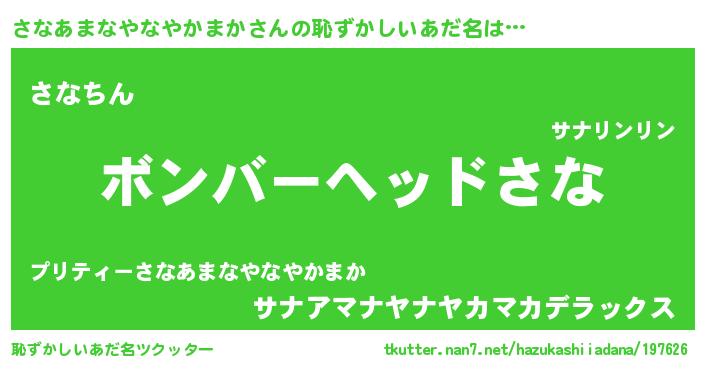 | ヘコむあだ名 | 『さなあまなやなやかまか(笑)』『酢こんぶ』 |