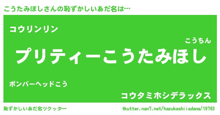 | 意味不明あだ名 | 『住所不定無職こうたみほし(62歳)』 |