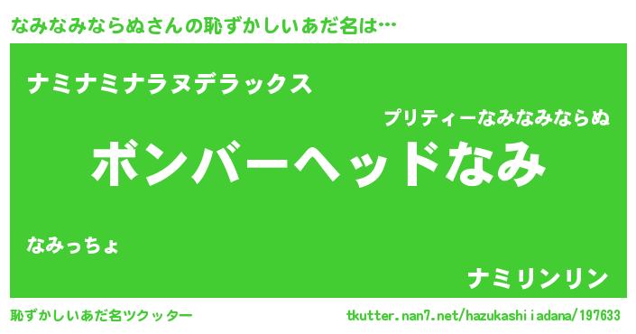 | ヒーロー風カッコイイあだ名 | 『仮面ナミダー』『炎刃騎士ナミ』 |
