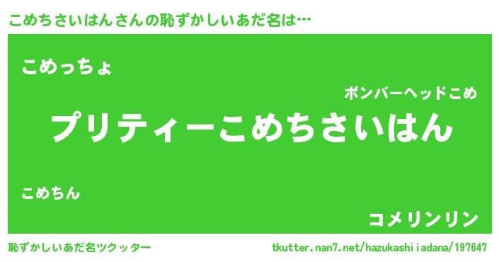 | 胡散臭い通販商品みたいなあだ名 | 『モテモテ間違いなし水晶球…その名も「こめちさいはん」』 |