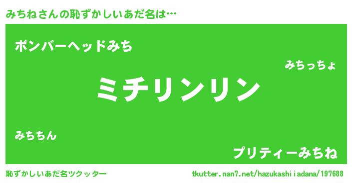 | 女子向けラノベタイトル風あだ名 | 『みちね様がみてる』『死神みちねの再婚』 |