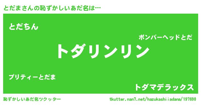 | ヘコむあだ名 | 『とだぷりん』『とだま(遠い目)』 |