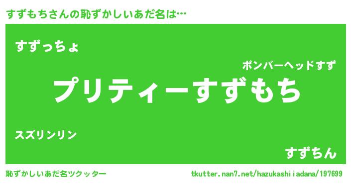 | 意味不明あだ名 | 『ペロリンすずもち』『永久保存すずもち』 |