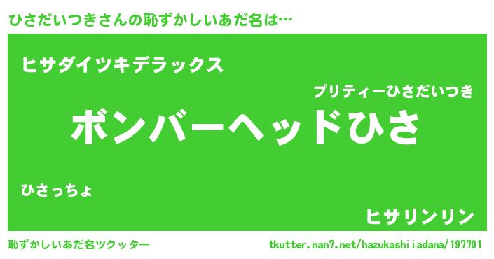 | 肩書あだ名 | 『ひさだいつき助手』『ひさだいつき総統』 |